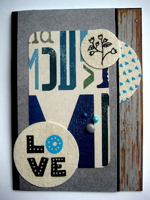 De sketch bij Mojo Monday challenge is té leuk om niet aan mee te doen. Lekker simpel, cirkels en een bloem: da's een makkie. Dus hup: papiertjes op tafel, kurk-tekstjes van Xenos, m'n favo-bloem-stans en knoopjes van Action, veel meer is niet nodig. Als finishing touch nog wat spetters, steentjes en een waxtouwtje, ik ben tevreden!